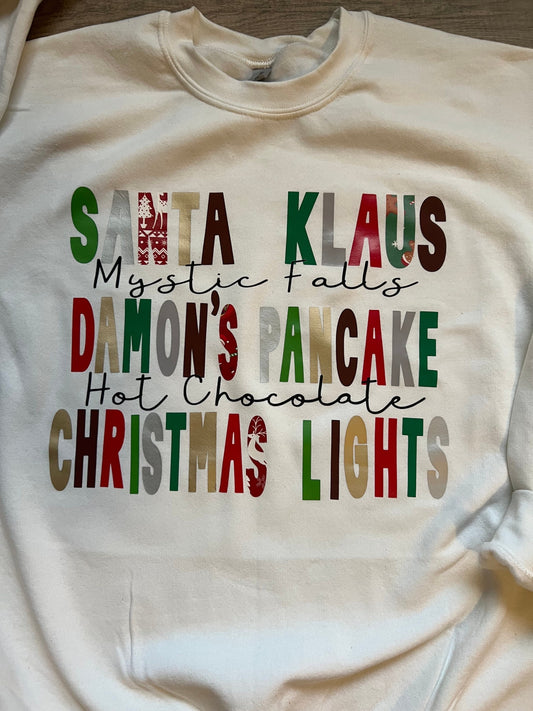 Mystic Falls and Christmas lights |The originals|Christmas sweatshirts|Vampire Diaries inspired sweatshirt|Damons pancake|santa Klaus